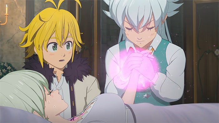극장판 일곱 개의 대죄 원망의 에든버러와 후속작 묵시록의 사기사에선 이런 모습이 좀 더 확실하게 나타납니다. 여신족이 가진 치유의 힘으로 엘리자베스를 치료하는 모습이나, 마신족 특유의 막대한 힘을 얻는 마신화로 강대한 적을 쓰러뜨리기도 합니다. 하지만 아직 어리기 때문인지 힘에 휘둘려 주변에 피해를 주기도 합니다. 이러한 모습은 어느 정도 성장한 묵시록의 사기사까지 이어져 마신화를 꺼려하는 모습을 보여주죠.