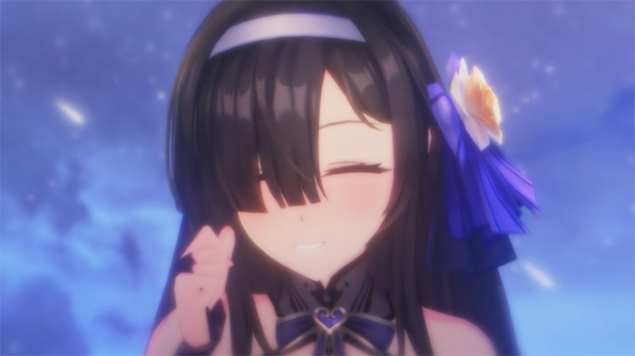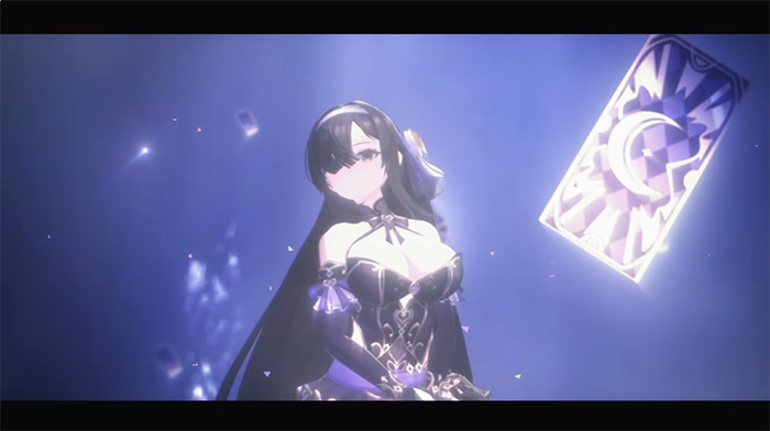 페이트의 비주얼은 블랙과 퍼플, 블루 컬러를 메인 콘셉트로 삼아 신비로움을 강조했습니다. 길고 차분한 머리칼로 한쪽 눈을 가린 다소 폐쇄적인 이미지와 달리, 화려한 드레스를 걸쳐 반전 매력을 선사합니다. 특히 머리에 장식된 리본 꽃과 머리띠는 그녀의 섬세한 캐릭터성을 잘 보여주는 포인트이기도 합니다.