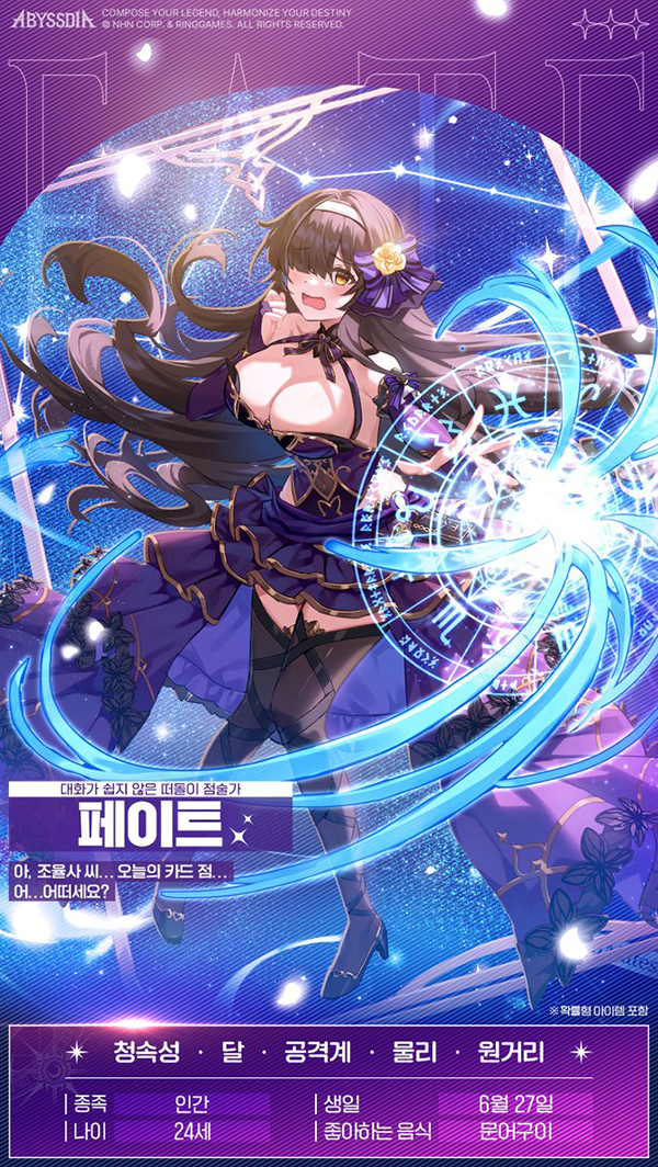 NHN이 서비스하고 링게임스가 개발한 체인 액션 RPG ‘어비스디아’가 3월 27일 공식 채널을 통해 신규 뱅가드 ‘페이트’의 상세 정보와 캐릭터 PV를 전격 공개했습니다.