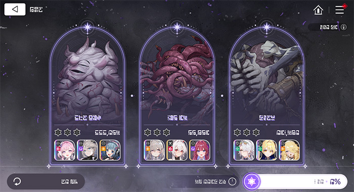 각 보스마다 하나씩, 총 3개의 파티를 구성해야 하며 한 번 전투에 투입된 인원은 다른 파티에 중복 편성할 수 없어 총 9명의 전투원을 전략적으로 육성하고 배치하는 능력이 요구된다. 특히, 총력전은 시즌 제한 없이 그동안 축적해 온 모든 세이브 데이터를 활용할 수 있도록 설계되어 기존과는 차별화된 덱 조합이 대거 등장할 것으로 기대된다.