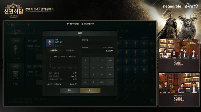 넷마블의 신작 MMORPG '솔: 인챈트(SOL: enchant)'가 4월 3일 공식 라이브 방송 '신권회담' 2화를 진행했다.