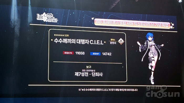 새로운 서번트로 수수께끼의 대행자 시엘과 도브리냐 니키티치, 서복이 공개됐다. 5성 문캔서 수수께끼의 대행자 시엘과 4성 랜서 도브리냐 니키티치, 4성 어벤저 서복이 4월 8일부터 5월 27일까지 진행되는 'BB 프레젠트 셀럽 서머 익스피리언스!' 기념 픽업으로 등장한다. 담당 성우인 혼도 카에데는 한국 서버의 픽업을 기념해 캐릭터 소개와 함께 한국 마스터들에게 인사를 전했다.