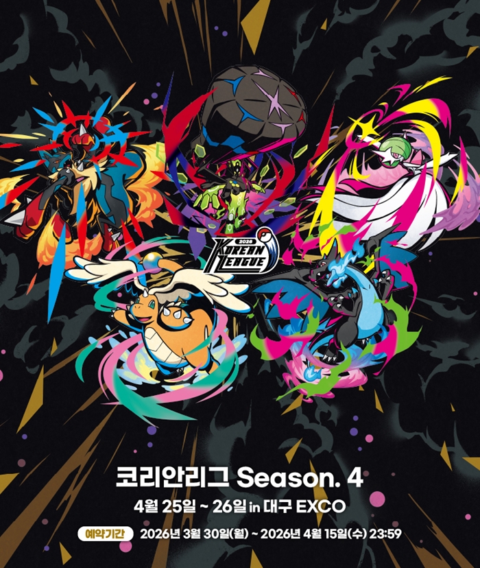 [자료제공 = 위드피알] 포켓몬코리아(대표 임재범)는 포켓몬 카드 게임 ‘2026 코리안리그 시즌4’를 오는 25일부터 26일까지 대구 EXCO 서관 전시장 1A홀에서 개최한다고 6일 밝혔다.