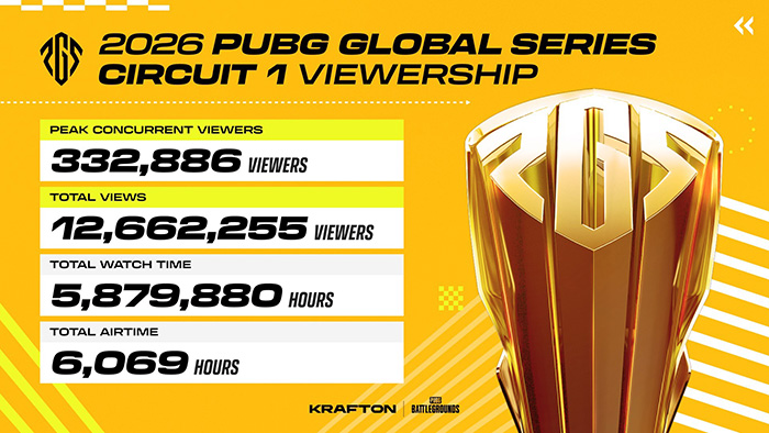 이번 서킷은 세 차례 시리즈를 아우르는 누적 성과를 통해 배틀그라운드 e스포츠의 글로벌 영향력을 다시 한번 보여줬다. PGS 서킷 1의 총 시청 횟수는 1,266만 회를 돌파했으며, 최고 동시 시청자 수는 33만 2,886명, 총 시청 시간은 587만 9,880시간을 기록했다. 또한 팬이 직접 투표를 통해 최우수 선수를 선정하는 이벤트 ‘플레이어 오브 더 데이’에는 누적 7만 3,000건이 넘는 참여가 이어졌다.