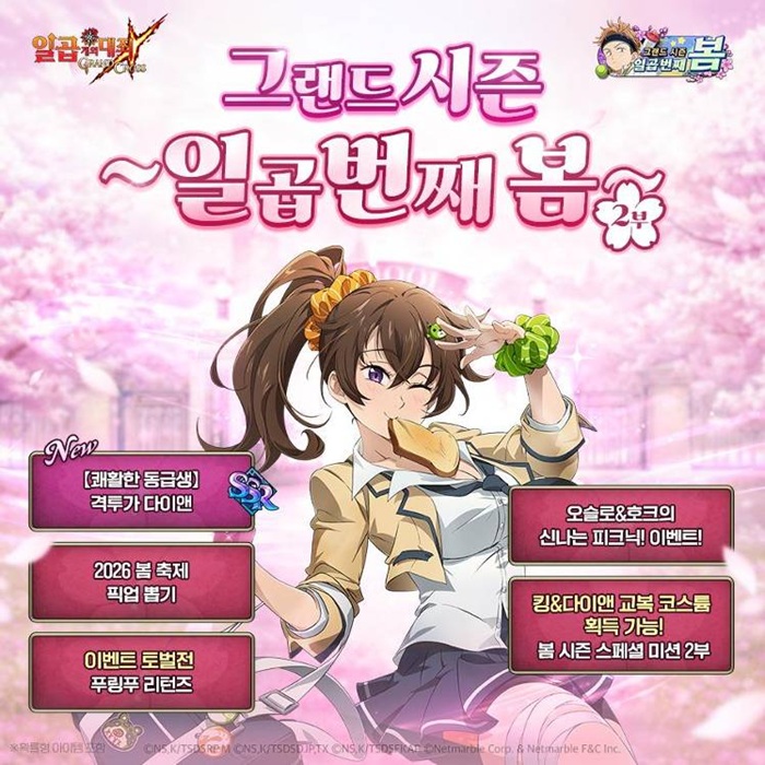 이날 업데트에서는 신규 영웅 '【쾌활한 동급생】 격투가 다이앤'을 추가하는 한편, 봄맞이 그랜드 시즌의 2부 페스티벌 이벤트를 개최했다. 아울러 일곱 개의 대죄:그랜드 크로스의 7주년을 맞이한 사전등록 이벤트가 개최되면서 기대감을 한층 높였다.