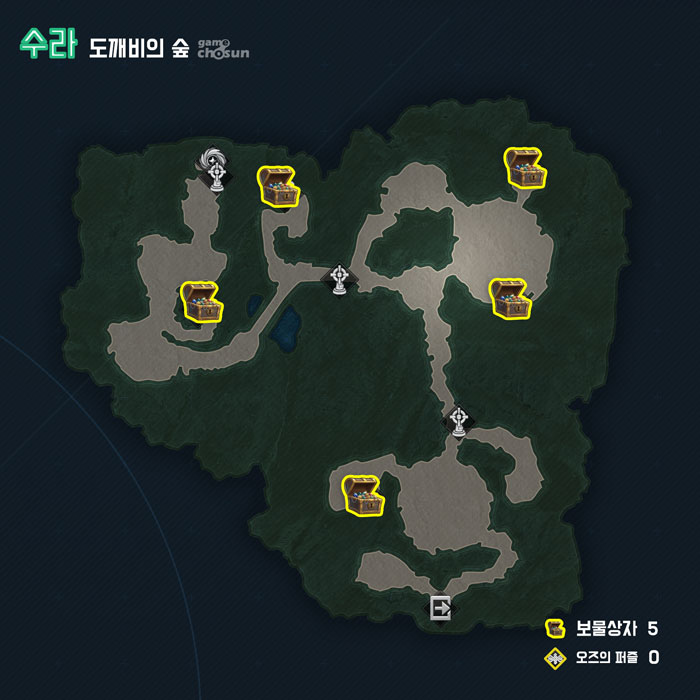 ※ 지도 범례 상의 보물상자 개수는 오즈의 퍼즐을 클리어한 후에 제공되는 보물상자의 개수까지 포함해 표시했습니다.