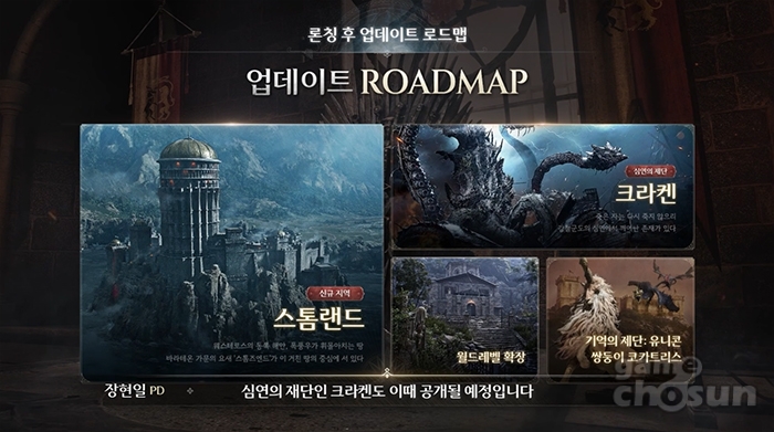 방송 말미에는 향후 업데이트 로드맵도 공개됐다. 신규 지역 '스톰랜드' 확장과 메인 퀘스트 업데이트, 월드레벨 확장, 기억의 제단 : 유니콘, 쌍둥이 코카트리스가 추가되고, 심연의 제단: 크라켄도 차례로 공개될 예정이다.