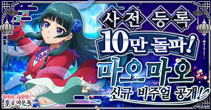 사전 등록 10만 건 달성을 기념하여 CTW는 주인공 ‘마오마오’의 신규 비주얼을 최초로 공개했다. 공개된 일러스트에는 마오마오가 우아하게 춤을 추는 모습이 담겨 있으며, 향후 다른 주요 캐릭터들의 게임 전용 신규 일러스트도 순차적으로 공개될 예정이다.