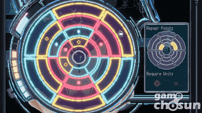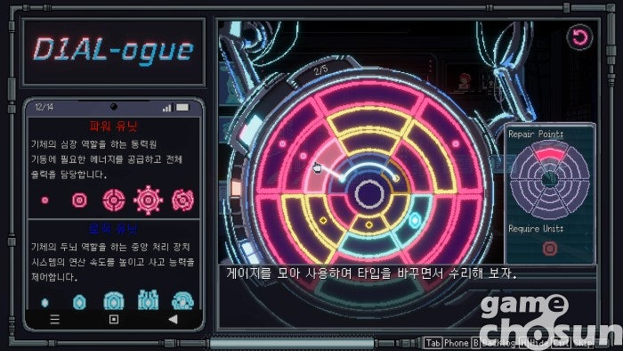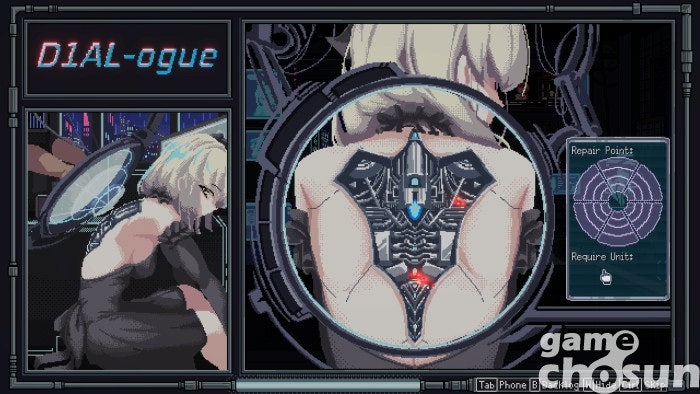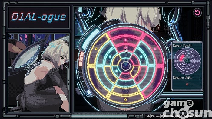 여기에 매치 3 퍼즐을 더해 사이버펑크 풍 수리를 표현했다 = 게임조선 촬영