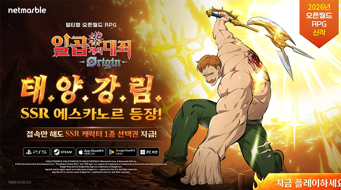 최근 플레이스테이션 스토어 글로벌 차트 1위를 기록하며 순항 중인 ‘일곱 개의 대죄: 오리진’은 이번 대규모 업데이트와 에스카노르의 등장을 통해 글로벌 시장에서의 흥행 기세를 더욱 굳건히 한다는 전략이다.