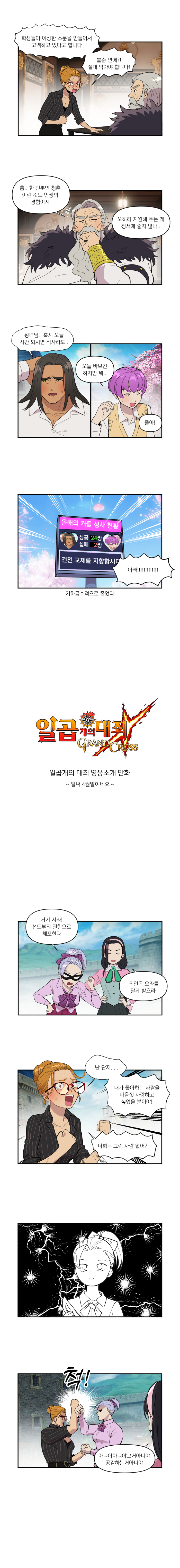 국도 작가의 일곱 개의 대죄:그랜드 크로스 영웅 소개 웹툰에서 원작 주요 등장 인물들을 각색한 에피소드로 큰 즐거움을 주고 있다. 새롭게 공개된 '불순 연애' 편에서는 일곱 개의 대죄:그랜드 크로스가 봄시즌을 맞이해 선보인 특별 에피소드를 재해석했다.