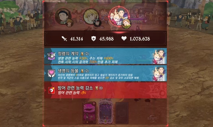 스바루&베아트리스는 필렙에 따라 개성 효과가 강력해지는 만큼, 최소 필2렙, 기본 필3렙 정도는 달성해주는 것이 좋습니다. 특히 정령의 계약은 필2렙부터 버프 유지 시간이 3턴이 됩니다.