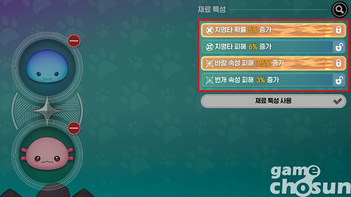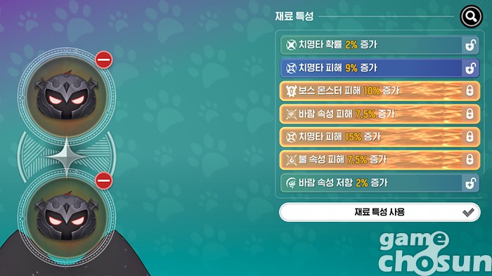 금색 특성 2개 가진 재료 몬스터링 제작 = 게임조선 촬영