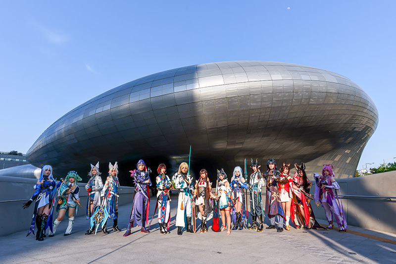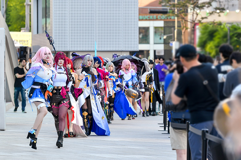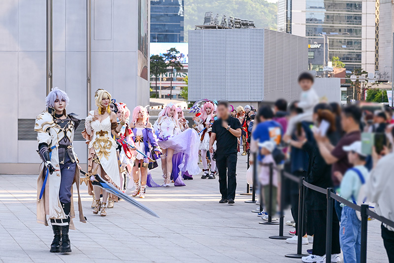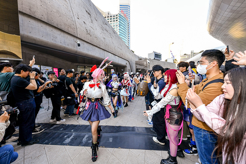 캐릭터의 세밀한 부분까지 완벽하게 재현한 코스프레 팀은 광장을 행진하며 관람객들과 하이파이브를 나누는 등 현장 분위기를 뜨겁게 달궜다. 마치 게임 속 캐릭터들이 현실 세계로 걸어 나온 듯한 장관에 행사 관람객들은 물론 DDP 어울림 광장을 방문한 시민들의 반응도 뜨거웠다.
