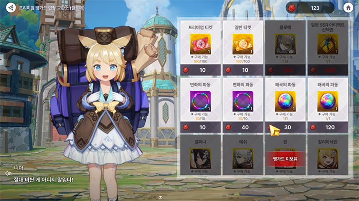 이번 업데이트의 주인공인 신규 SSR 뱅가드 ‘클로에’는 '녹 속성', '달 표식', '중거리', '마법 공격', '지원계' 캐릭터다. 엉뚱한 고양이 귀 교수님이라는 콘셉트에 맞춰 거대 주사기 형태의 무기 '카두세우스X7C - 몽실몽실군'을 활용해 마법 공격과 아군 치유를 동시에 수행한다. 특히, 강력한 힐러 자원이자 AP 관리 자원으로의 메리트가 높은 인권 캐릭터로 평가 받는다.