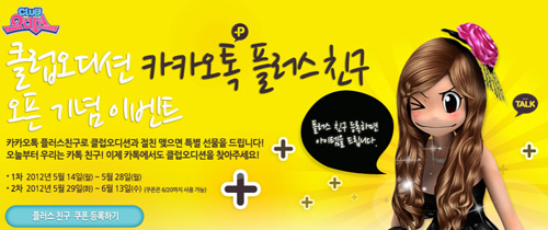유저는 스마트폰에서 카카오톡 애플리케이션에 접속 후 '친구찾기'에서 '클럽오디션'을 검색해 플러스친구로 등록하면 홈페이지에서 사용 가능한 쿠폰을 실시간으로 받을 수 있다.