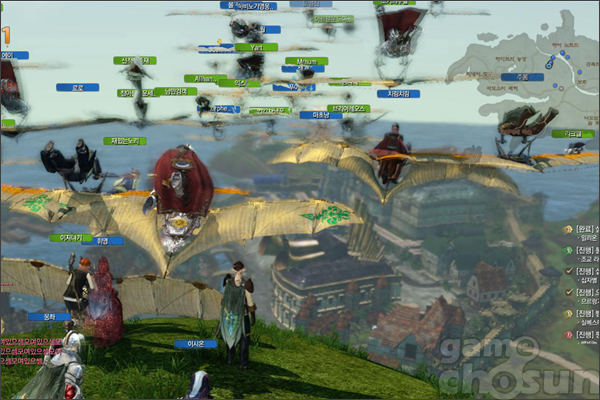 ▲ 동대륙 이니스테르를 공중 습격 중인 서대륙 유저들