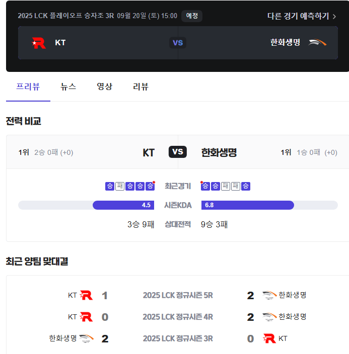 플옵 승자조에서 한화랑 kt가 결승 선착을 위해 붙음.