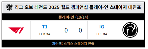 LCK의 4시드 T1과 스위스 스테이지 진출권을 놓고 싸우게 됩니다.