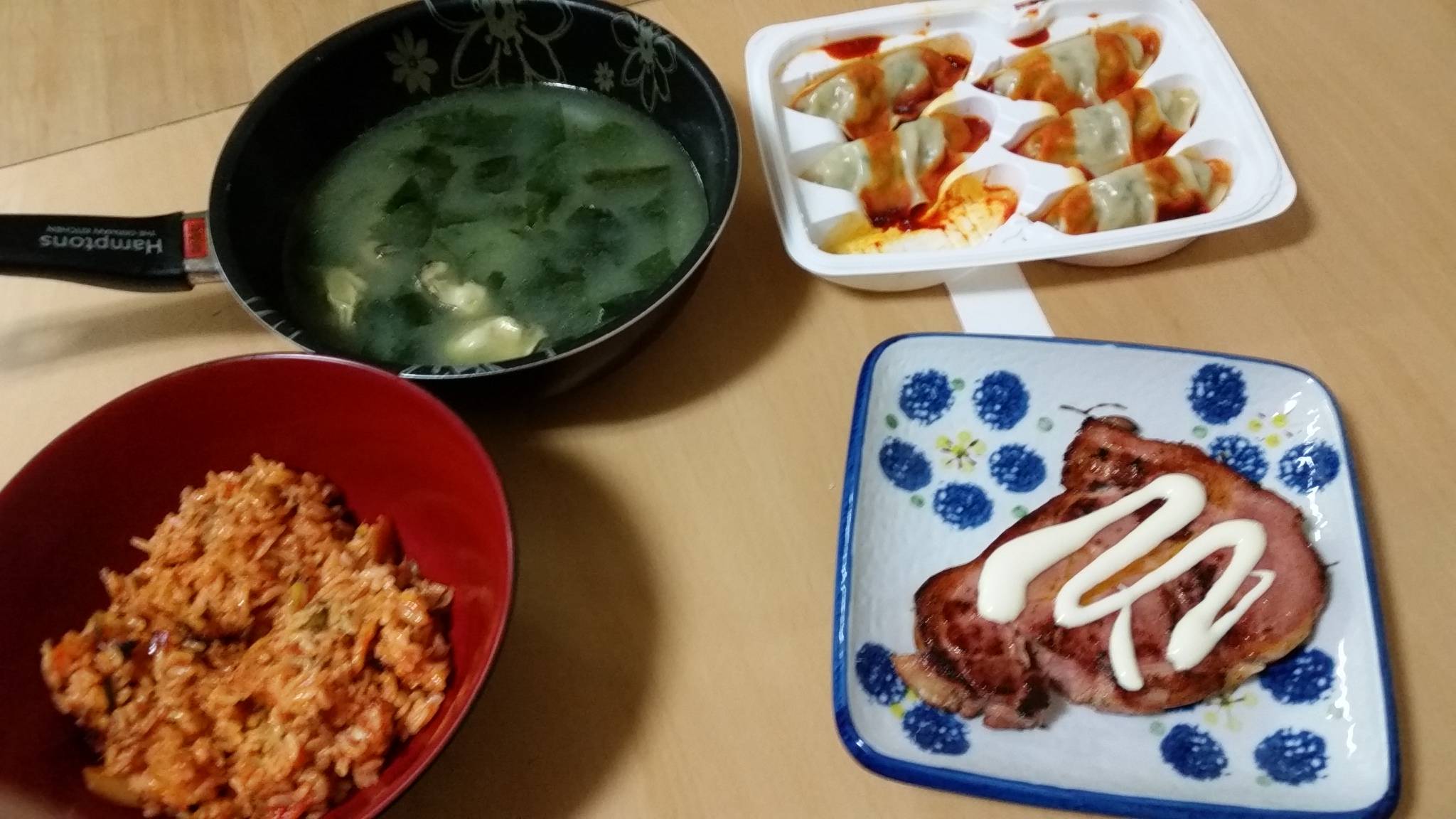 굴미역국에 김치볶음밥 유통기한 마지막날이라고 세일한 스테이크