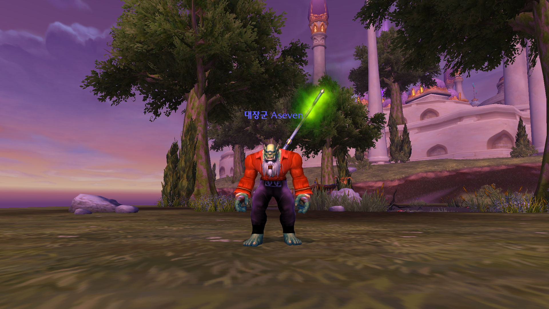 인간 여캐로 이쁜 룩이였던 거 기억나서 오크 남캐로 그거 그대로 입혀보니; 한숨 나오네