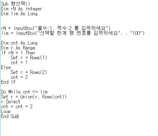 난 지금 13행 이후로부터만 저 매크로가 적용되서 홀수나 짝수로 선택해버리고 싶은거임