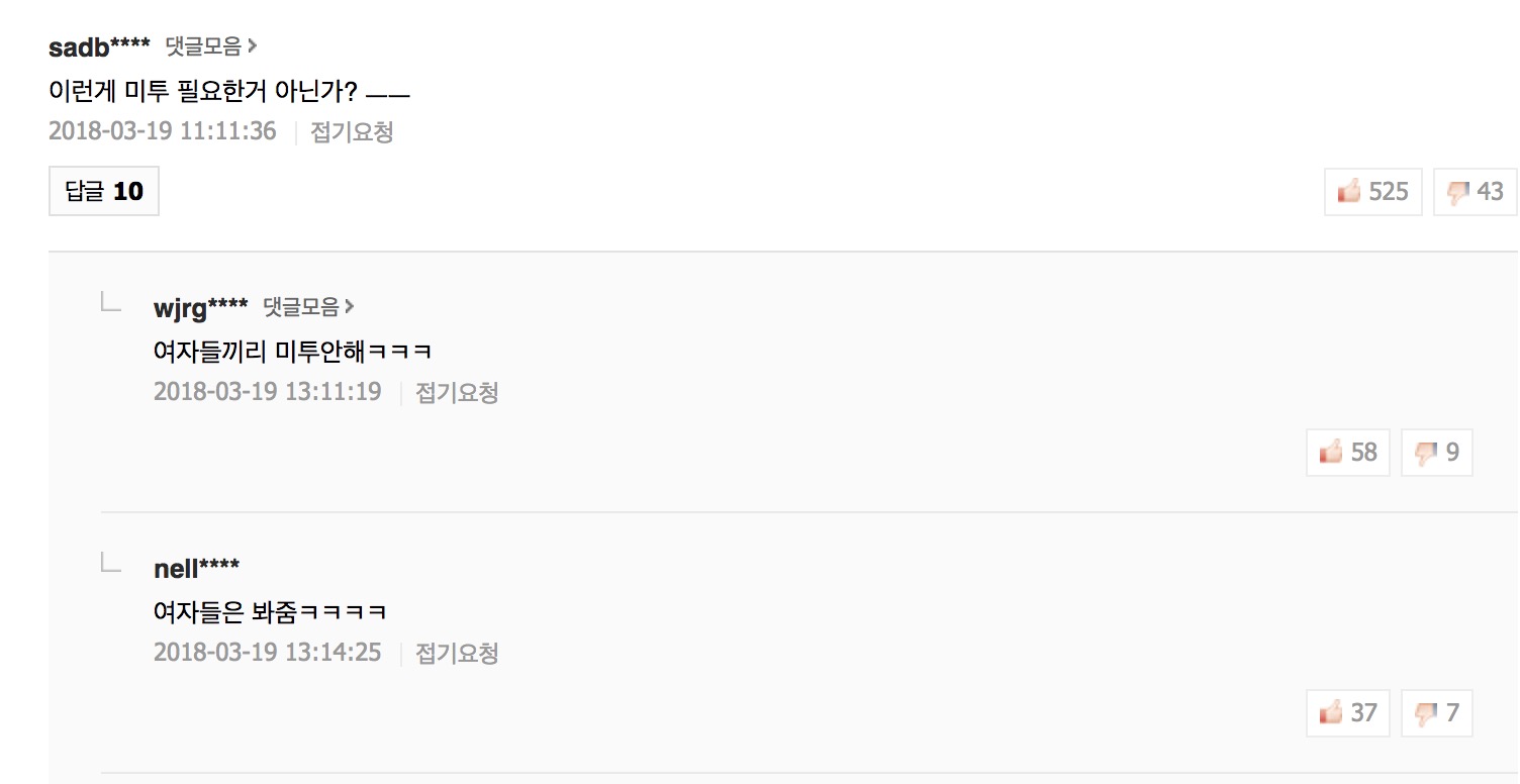 지들끼리 미투는 안함ㅋㅋㅋㅋ