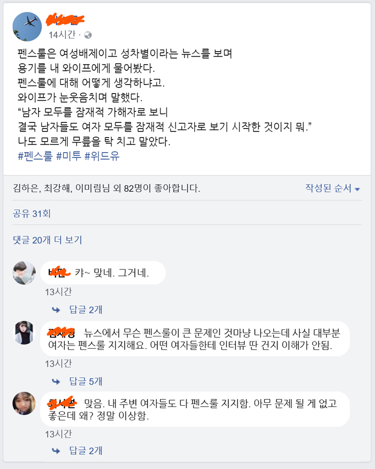 임자가 있는 이쁜애들이야 자기남자가 자기이외여자에게 얼씬도 안하니 당연히 좋지. 쿵쾅이들은 해당사항없으니 부들대는거