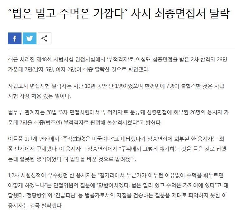 사시 최종 면접에서 법은 멀리있고 주먹은 가까이 있다라...