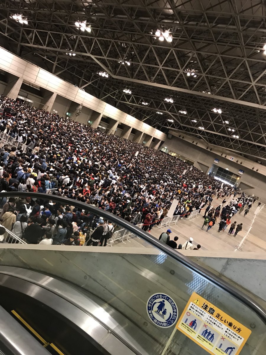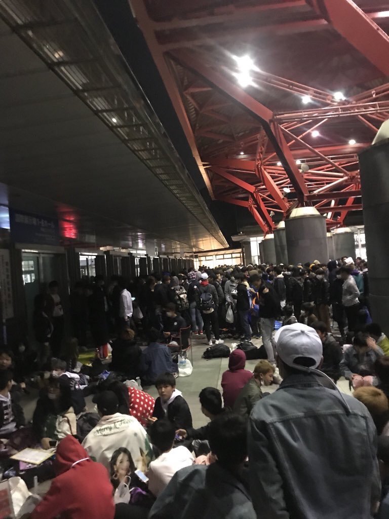 어제부터 하이터치회 한정 굿즈 사려고 대기하고 있던 일본 원스들.