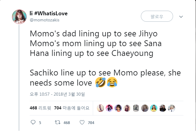 모모 아버지는 지효랑 하이터치하러 가고, 어머니는 사나한테, 언니 하나씨는 채영이 줄에 갔다는 얘기.