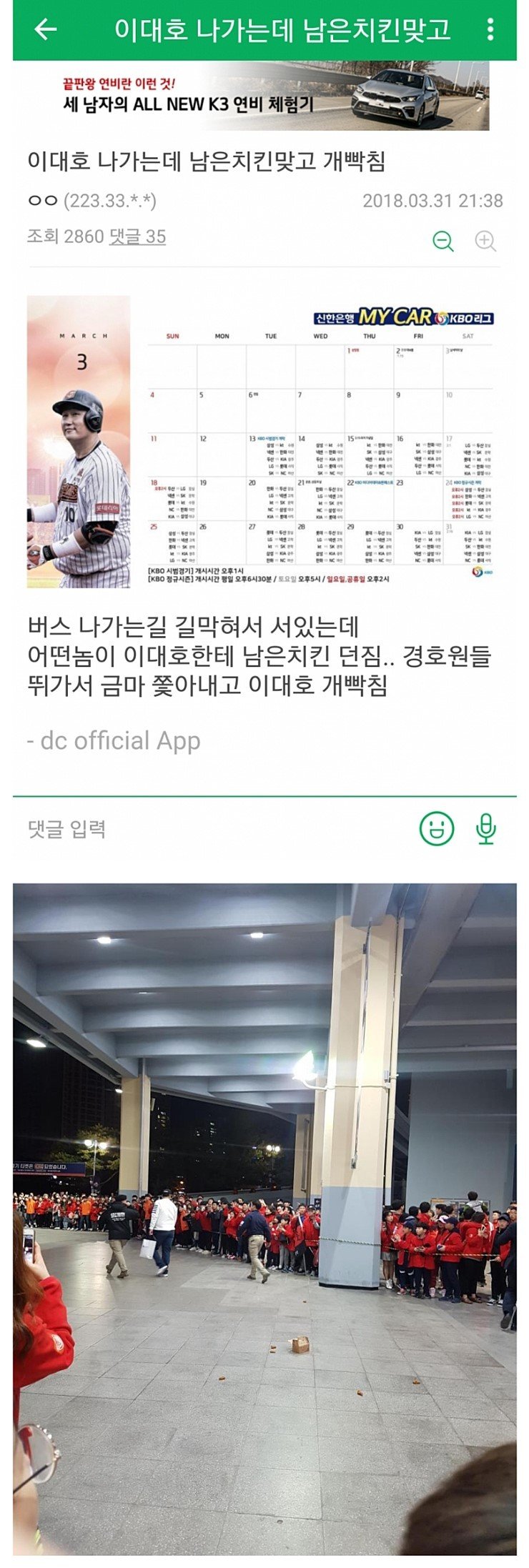 아 치킨 아깝네 ㅡㅡ 치킨을 남기다니 큰 죄악을 저질렀어 거기다 던지기까지? 치킨의 저주로 꼴데 15연패 갈듯