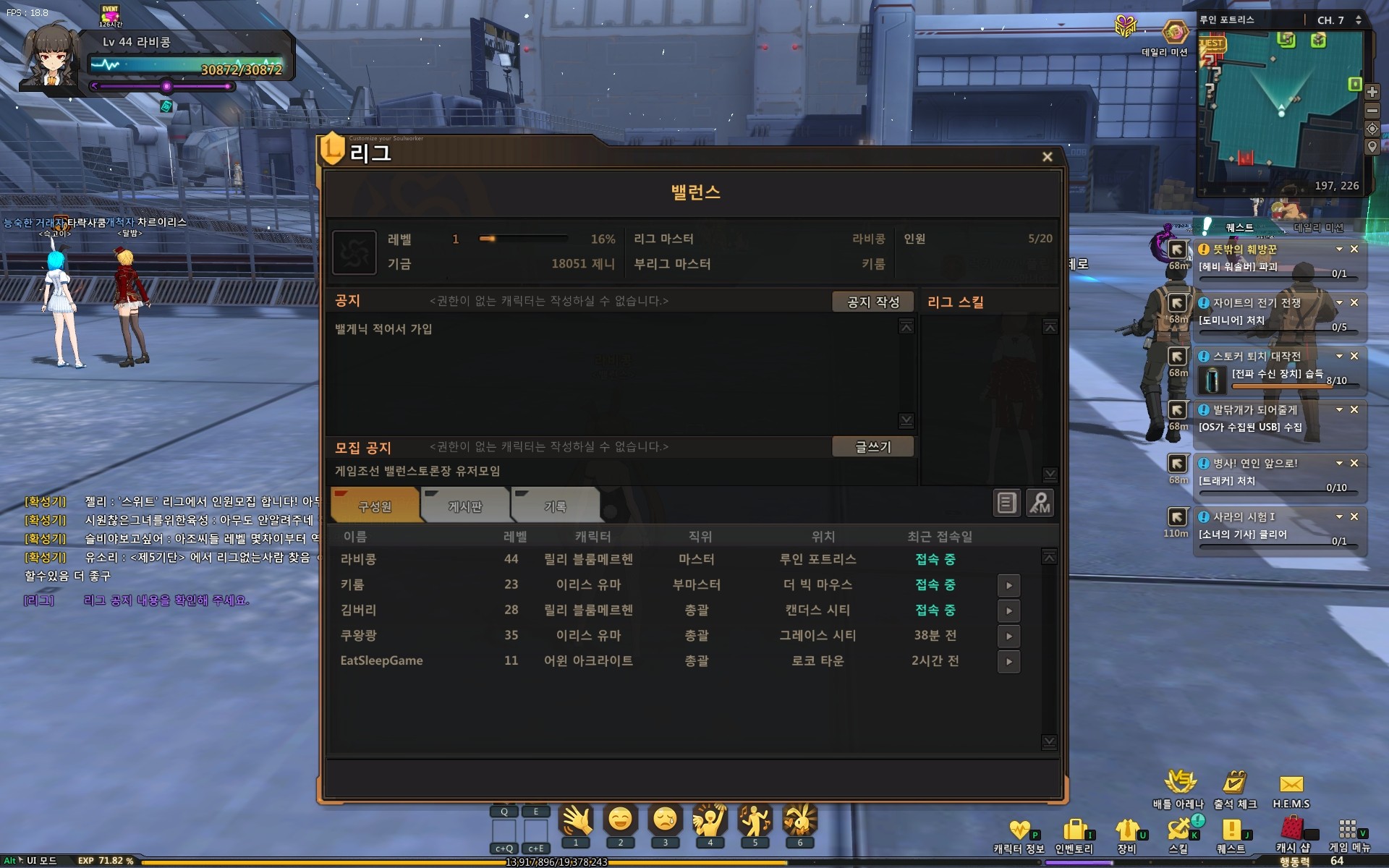 밸게 리그 5명 됐음 리그 검색하는건 리그 탭가면 나올껄? 아니면 리그 관련 NPC 찾아가십쇼