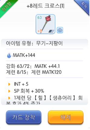 뒤에 숫자 72는 현재 레벨 99까지 됨 저건 걍 돈내면되는거고 주황색이 제련인데 저게 빡셈 실패 확률이좀있어서