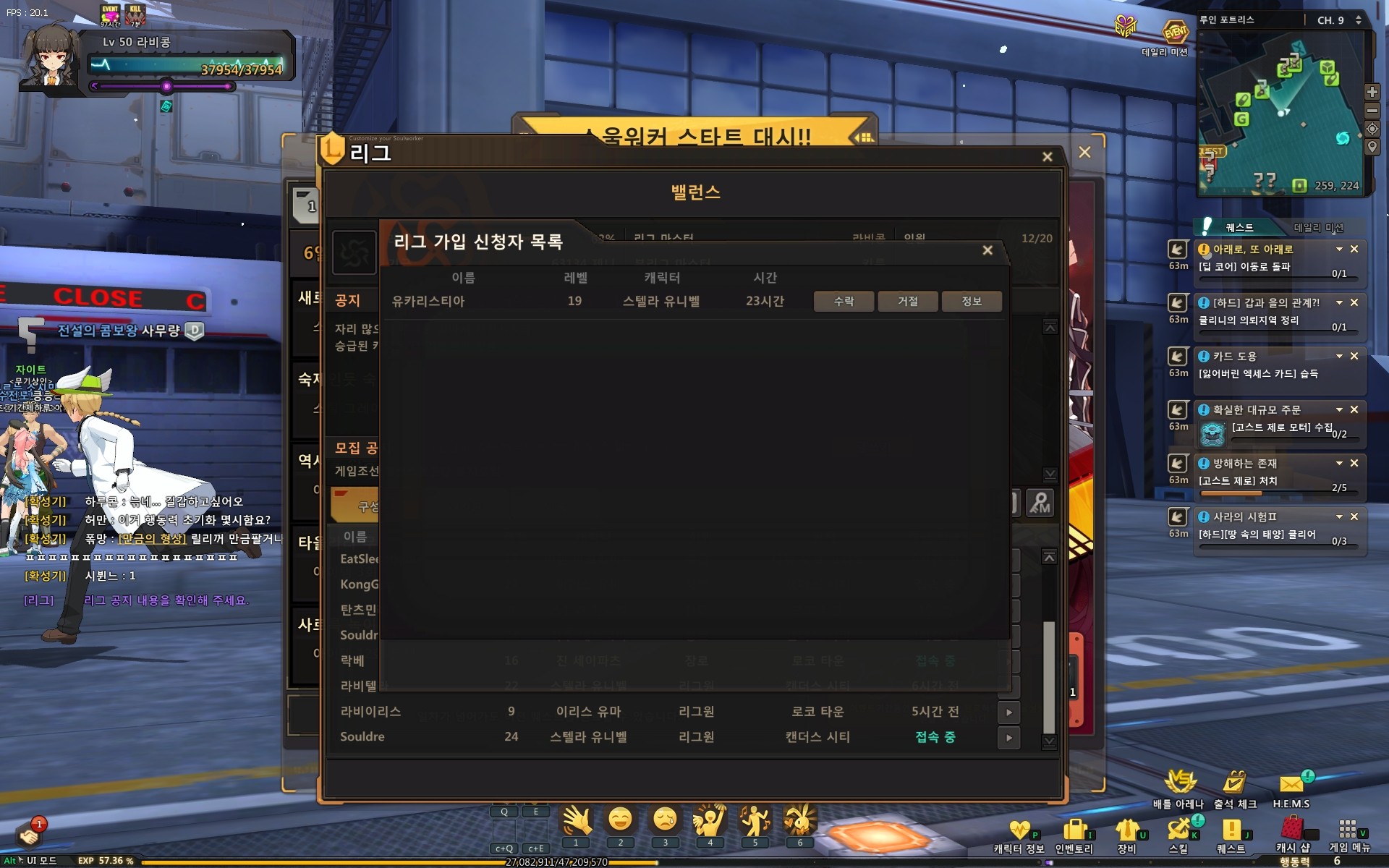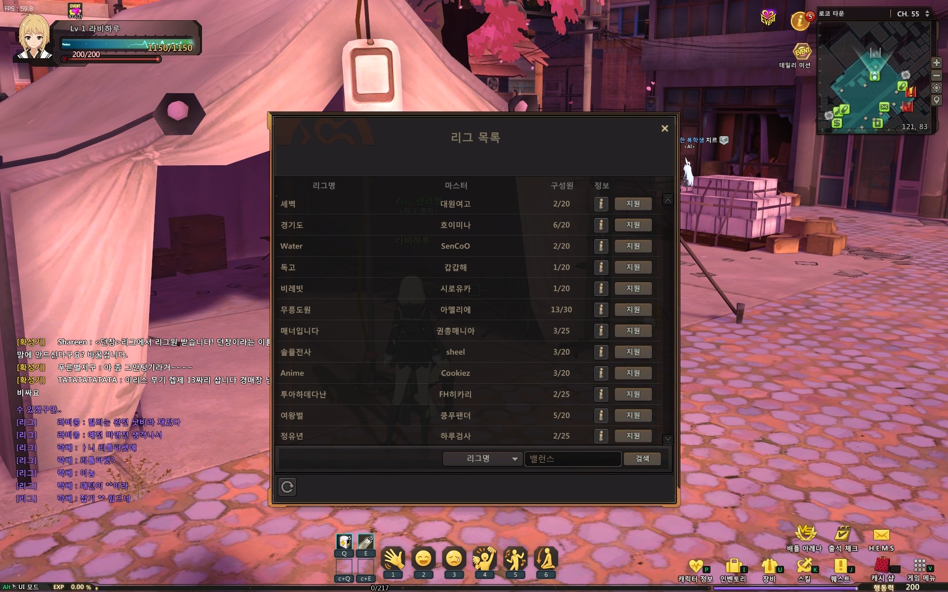 말걸면 메뉴가 2개 있는데 리그 목록 클릭