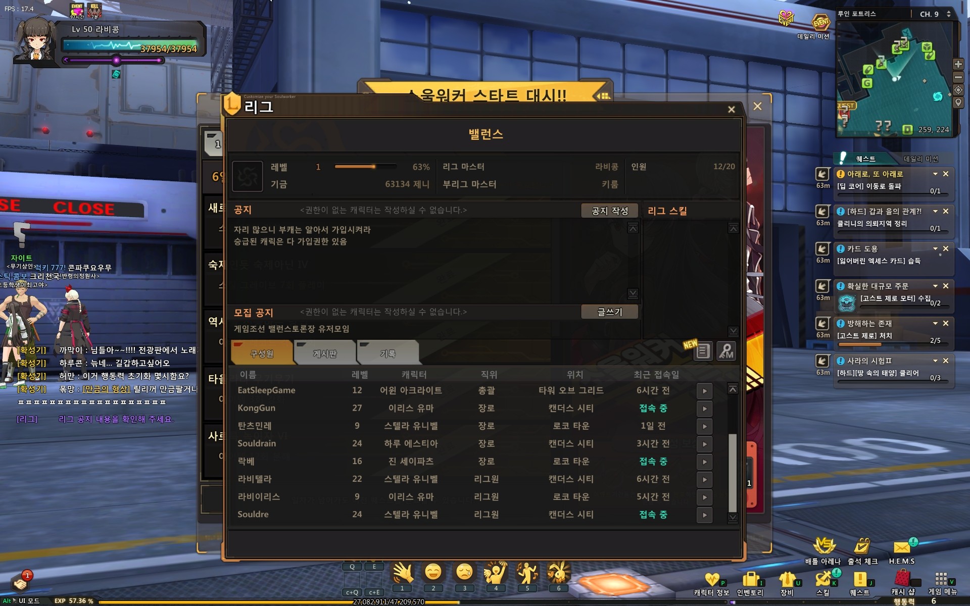 일단 마을에 있는 리그 관리 NPC를 찾아감