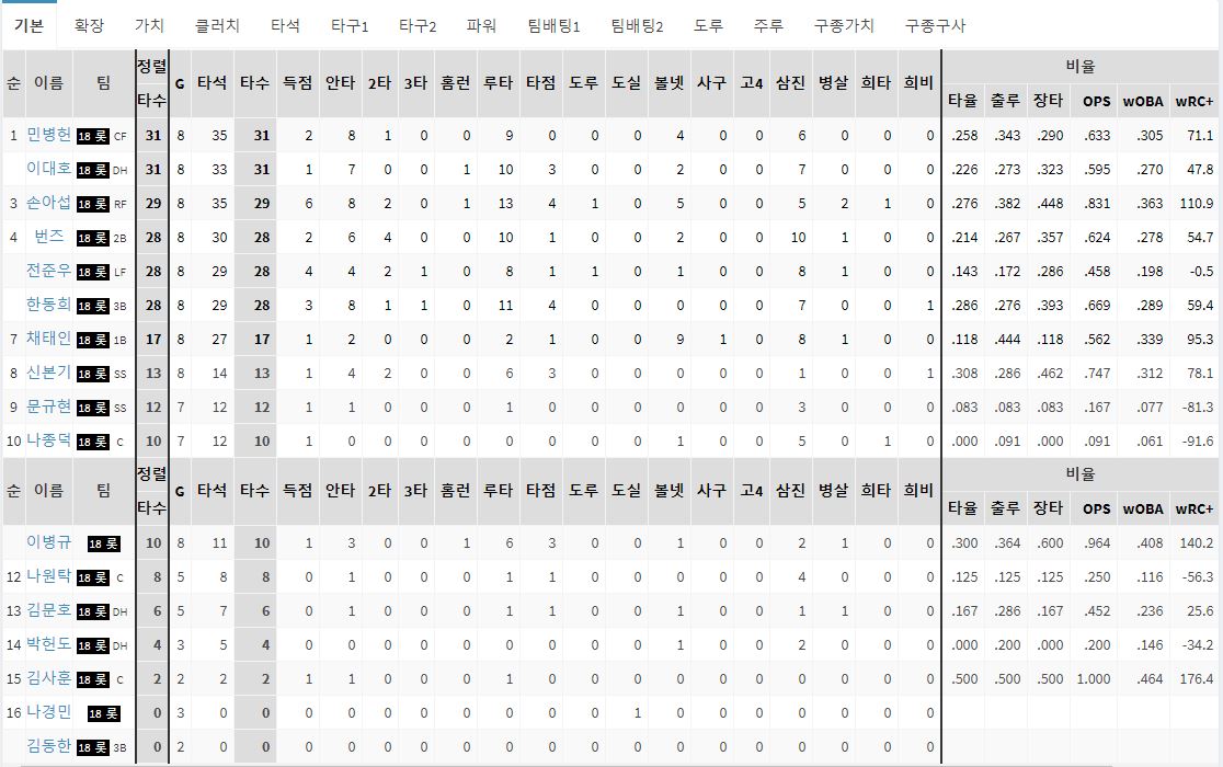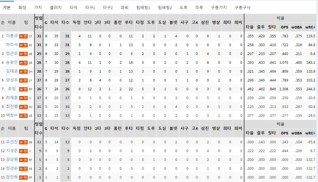 사실상 한화는 3할3명 4할 2명이 있었음..ㅠ