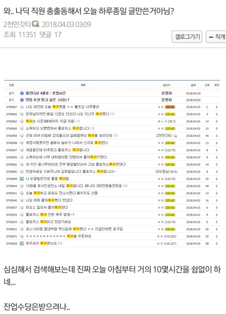 ㅋㅋ저거 누가 정리한거 있던데 아이피3갠가 5갠가? 계속 복귀글만 씀