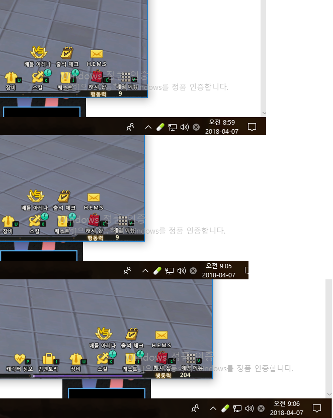 근데 9시가 되면 행동력이 바로 들어오는게 아니라 재접을 해야함