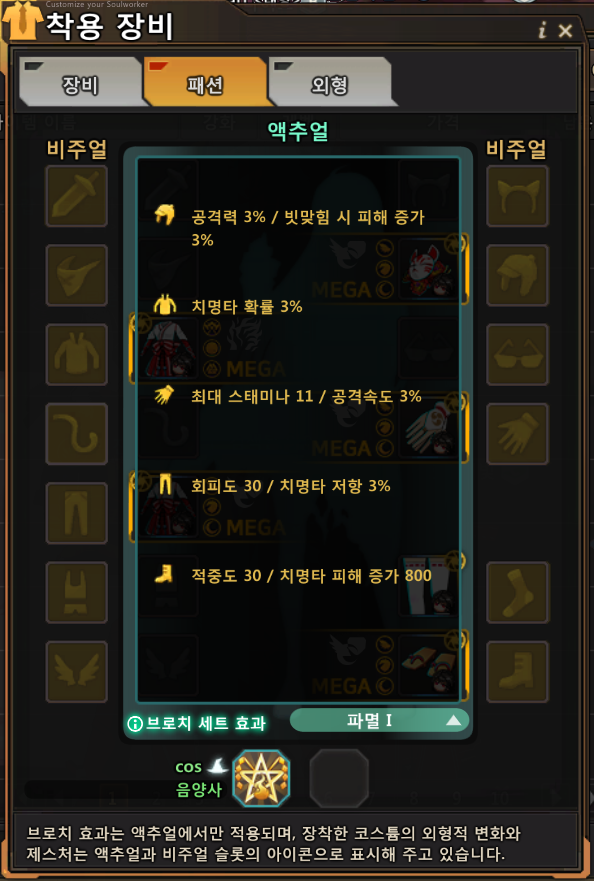 브로치(메가셋) 효과 대충 적어보면