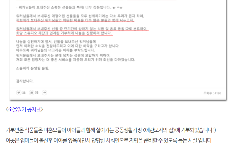 선물받은거 기부한 회사
