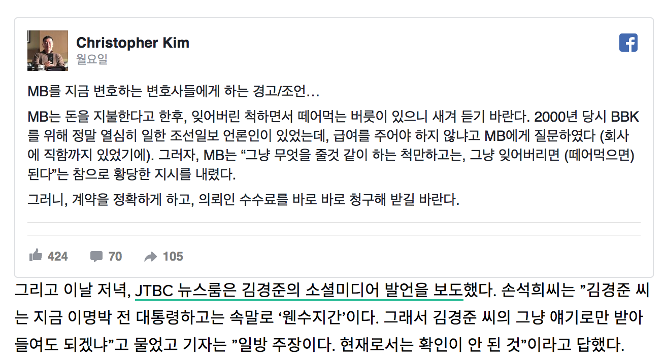 그래서 오늘올라온 김경준의 반박글
