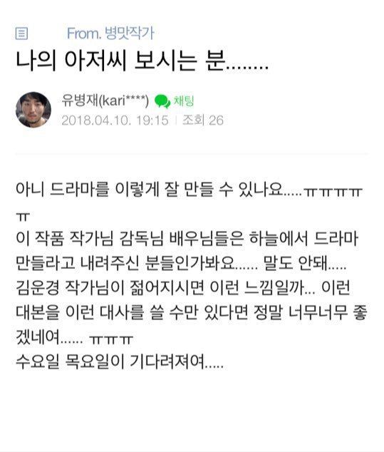 팬카페에 나의아저씨 재밌다고 글 올림