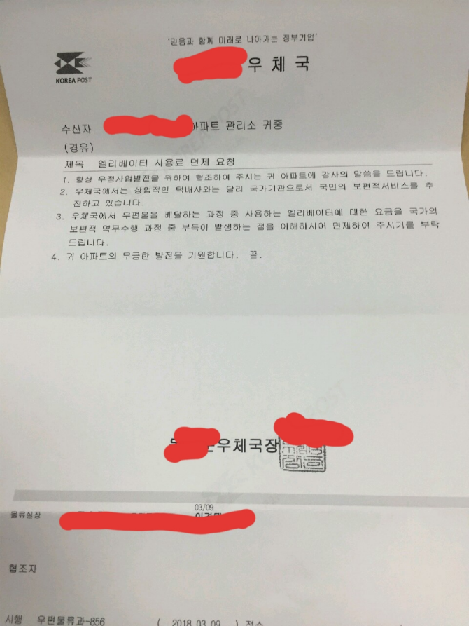 이번 이슈된 다산은 아니지만 다른 동네에서는 택배기사들 쓰는 엘리베이터 사용료도 아까워서