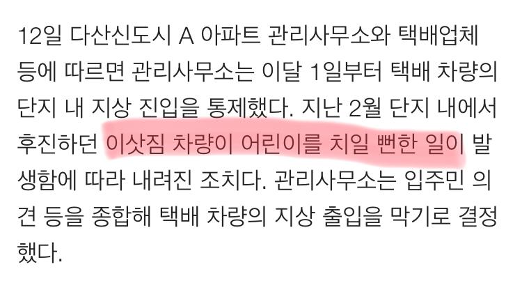 뭐 이번 건 같은 경우는 아파트가 당연히 잘못한거지만 그걸 떠나서도 택배차 등에 후방카메라 없는건 무서운데.