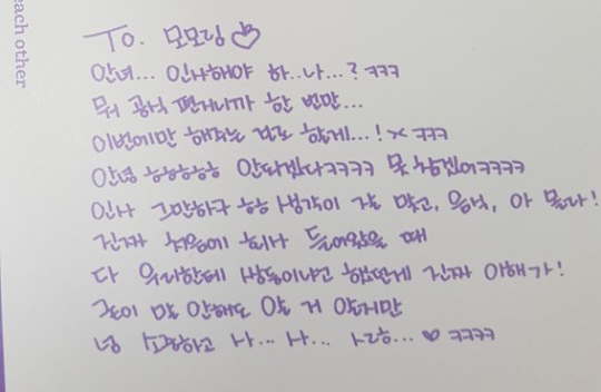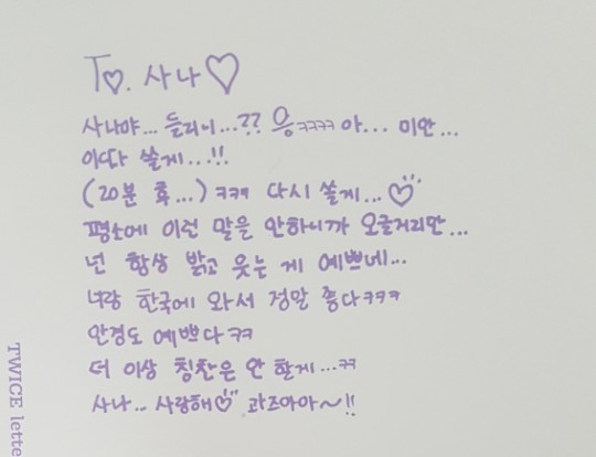 모모가 사나에게 - 어색해서 한참 웃고 온 다음 쓴 모양.