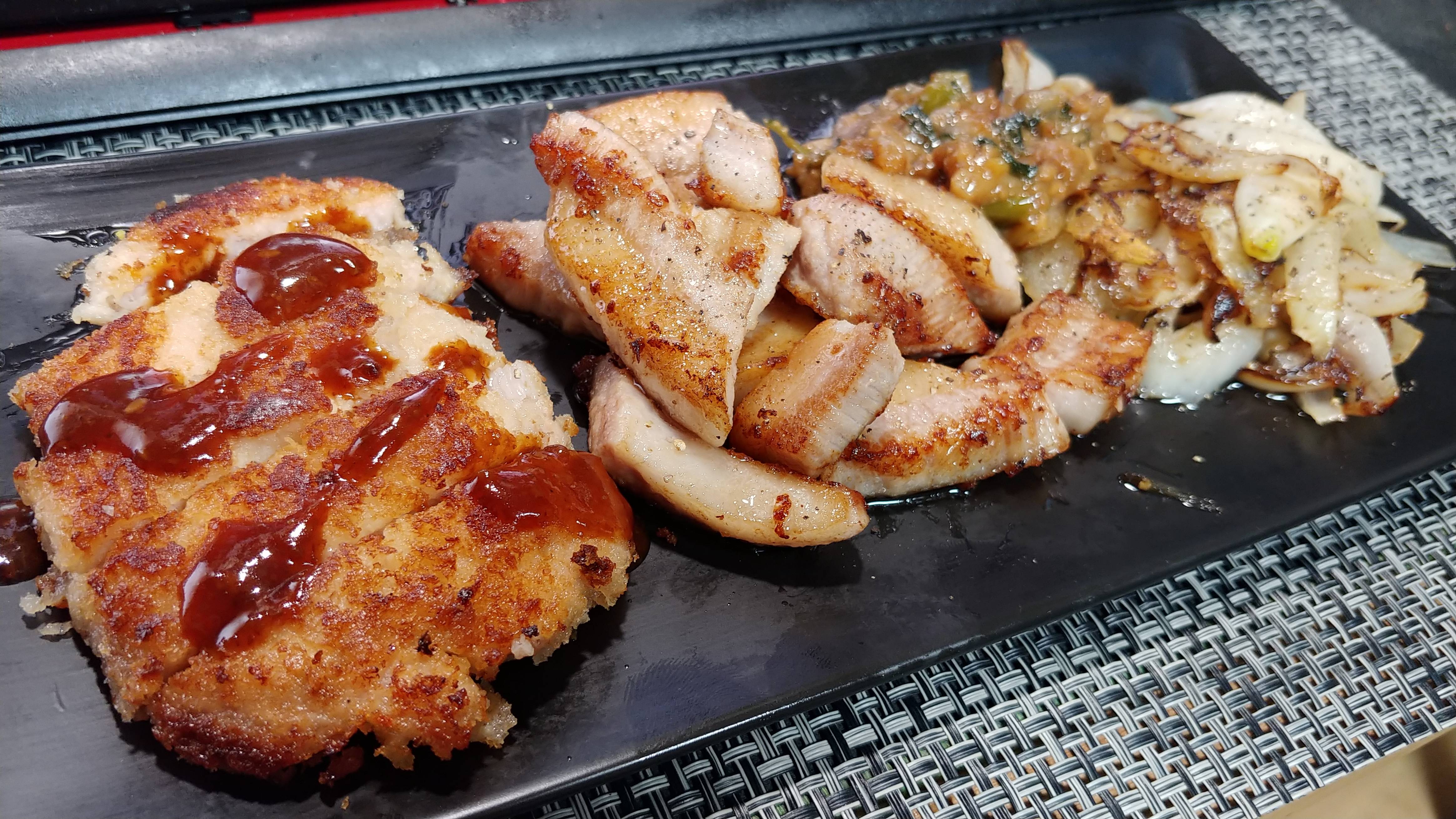 돈까스 항정살 머위강됀장이랑 양파볶음 돼지기름에 소금 후추로 볶은 양파는 존맛이지