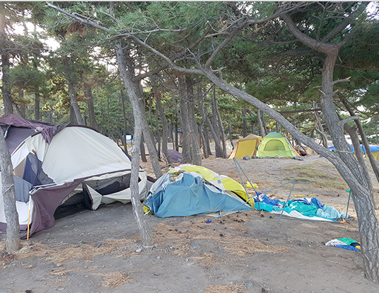 XX해수욕장 같은 무료캠핑장에 싸구려 텐트 쳐놓고