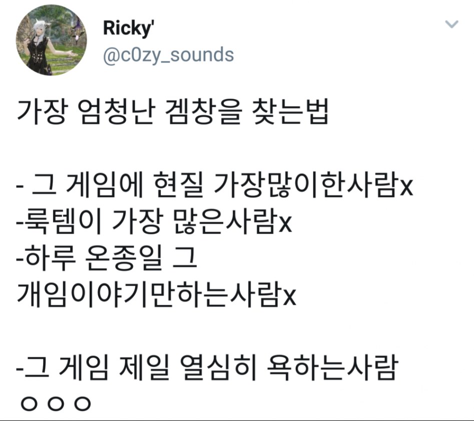 전혀 공감 안되네 가장 확실한 기준은 플레이타임이지 겜 별로 안해도 욕은 얼마든지 가능