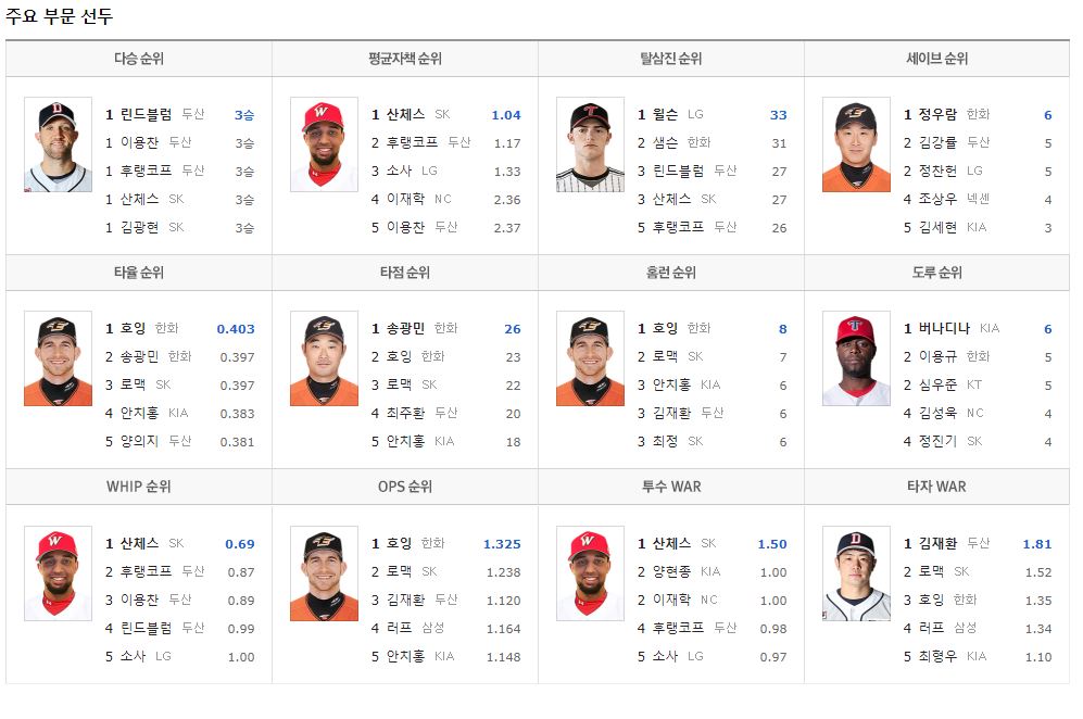 각 선두부문에 이름 올린놈이 단 한놈도 없음